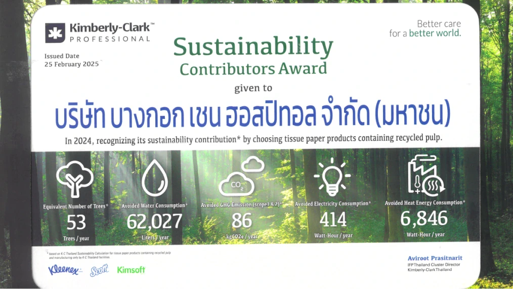 In 2025, BCH utilized a total of 2,658,022.1 kilowatt-hours (kWh) of electricity from renewable energy sources, accounting for 4.68% of the company’s total electricity consumption. BCH remains committed to increasing the proportion of renewable energy and minimizing environmental impacts in a sustainable manner. Moreover, the company has a plan to expand solar power generation capacity at Kasemrad Hospital Mae Sai, which is expected to commence operation in 2026.
