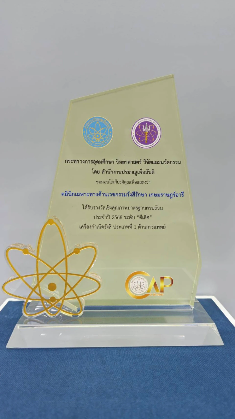 Aug 14, 2025, Kasemrad Ari Radiation Oncology Clinic received the Comprehensive Quality Standards Award 2025 in the category of Type 1 Radiation Generators – Medical Use, achieving the “Excellent” level, by the Office of Atoms for Peace (OAP), under the OAP Award, at the MHESI Fair 2025, held at the Queen Sirikit National Convention Center.